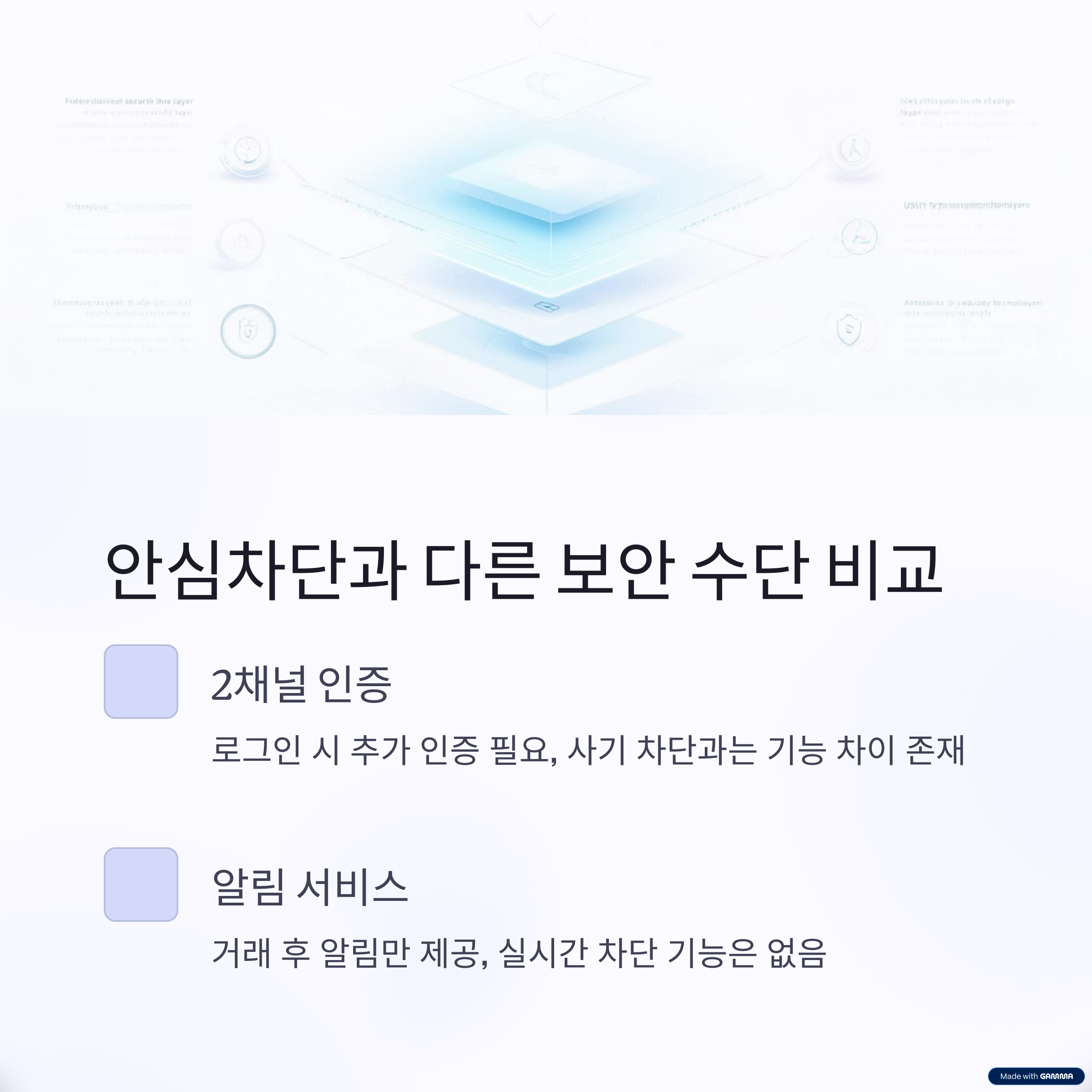 하지만 안심차단은 아예 그 거래 자체를 못 하게 막아주는 기술입니다.