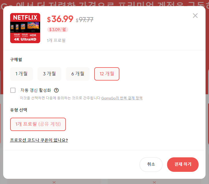 1. 공유 플랫폼 갬스고를 활용하시면 넷플릭스를 더욱 저렴하게 이용하실 수 있습니다.