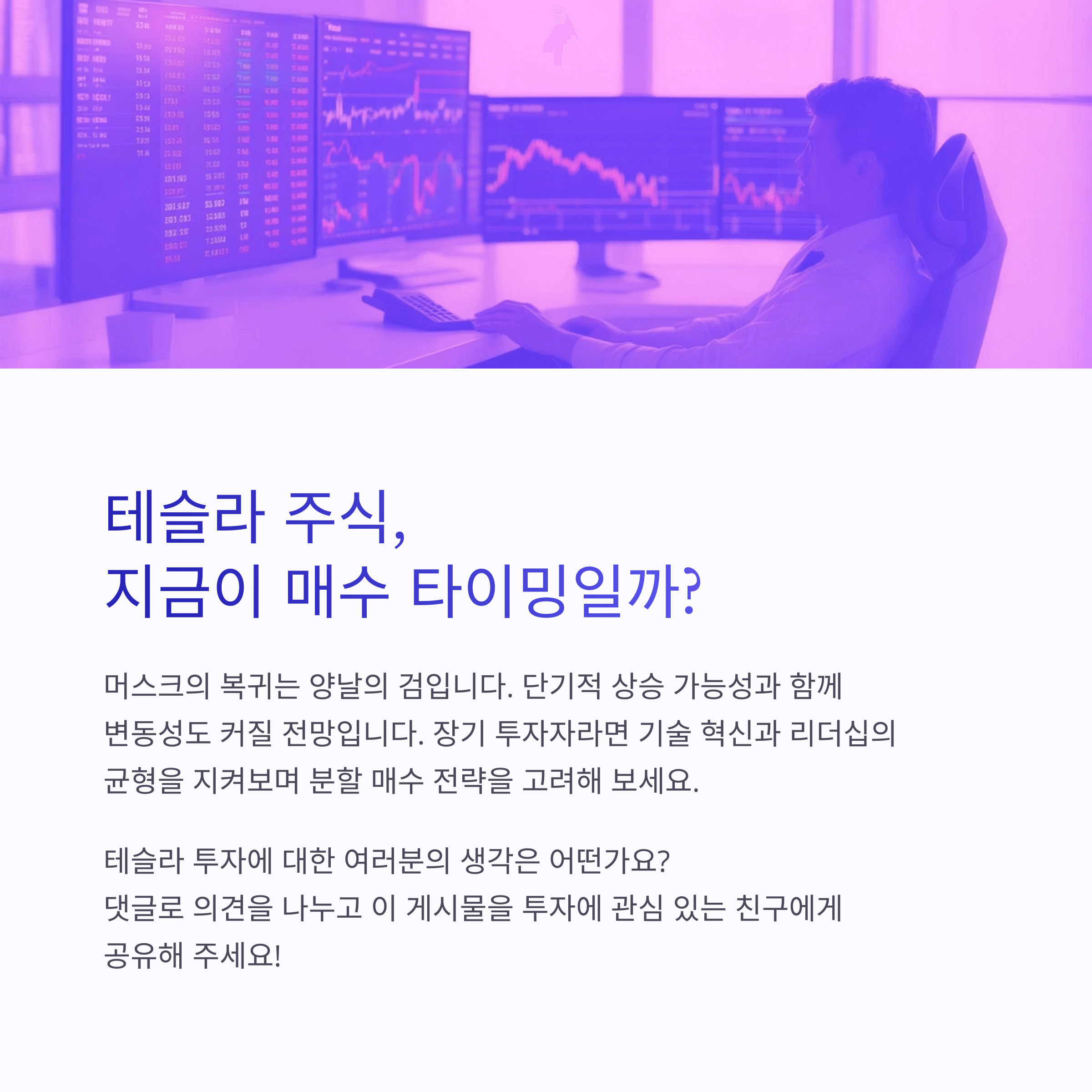 단기 주가 반등은 분명 “머스크 복귀 프리미엄”이다.