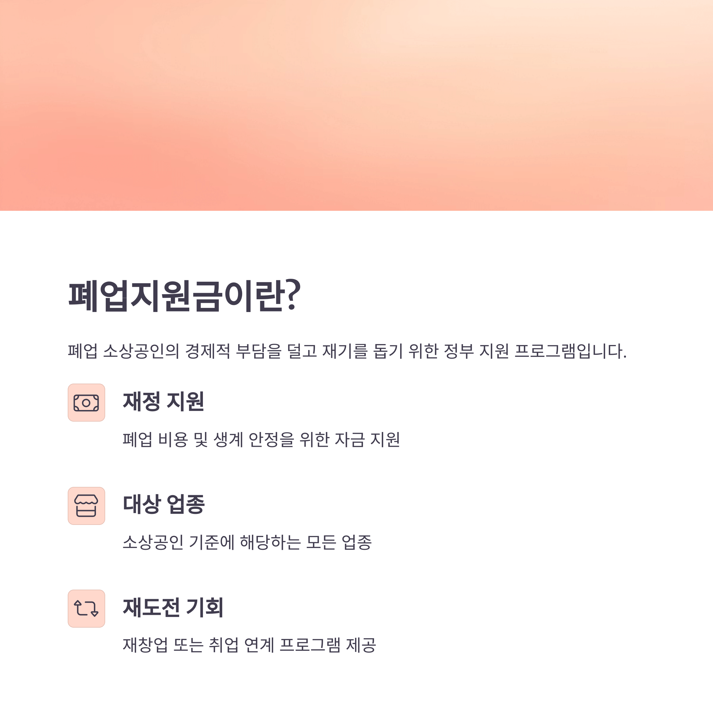 폐업 후 재도약을 돕기 위해 정부에서 지급하는 한시적 지원금입니다.