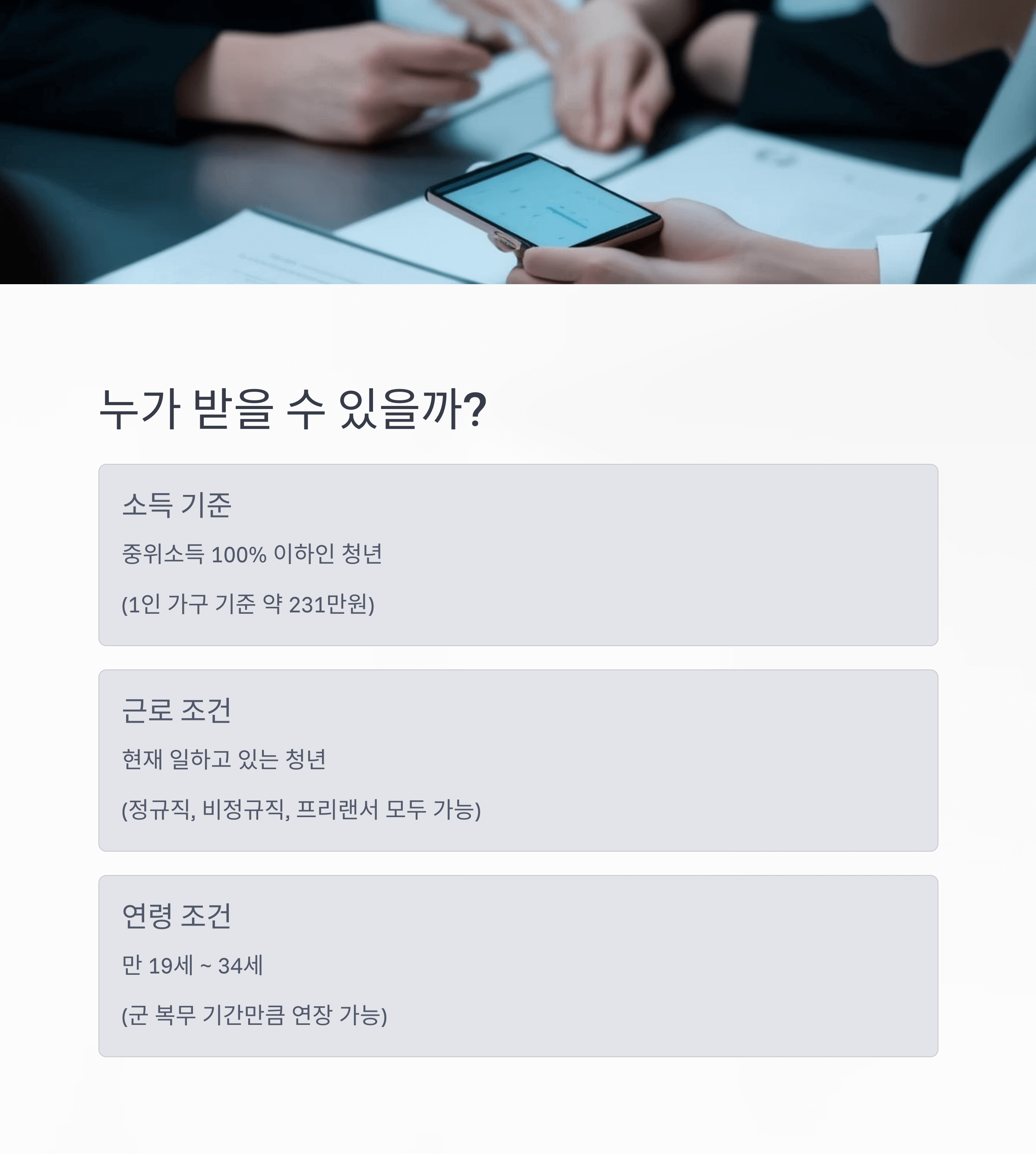 2025년 기준, 만 19세~34세의 근로 청년이면 기본 자격이 된다.