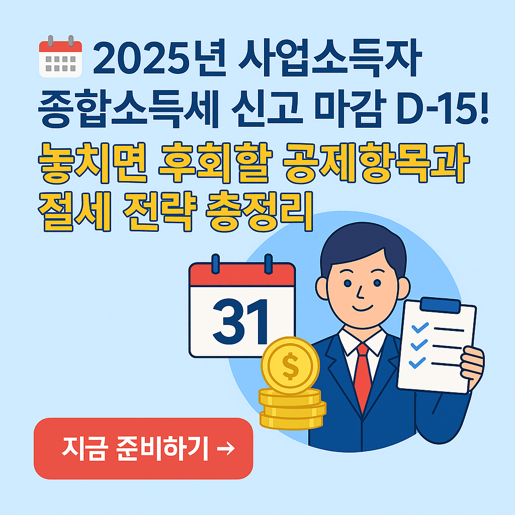 📅 2025년 사업소득자 종합소득세 신고 마감 D-15! 놓치면 후회할 공제항목과 절세 전략 총정리