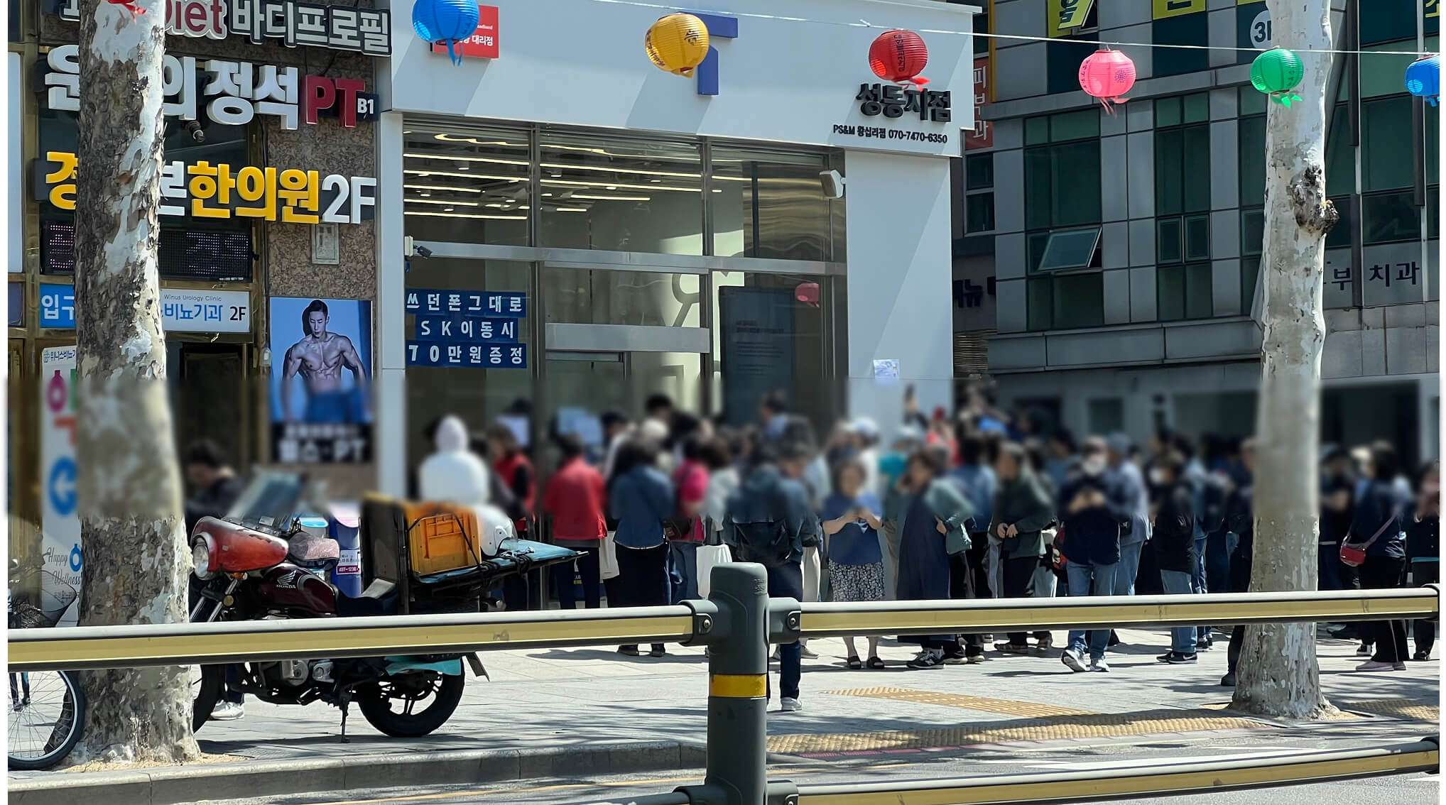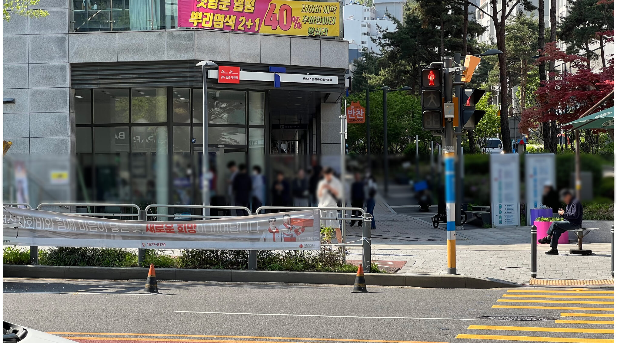 횡단보도 불바뀌자 마자 어르신, 주민들 너나할 것 없이 SKT 매장으로 달려옵니다..