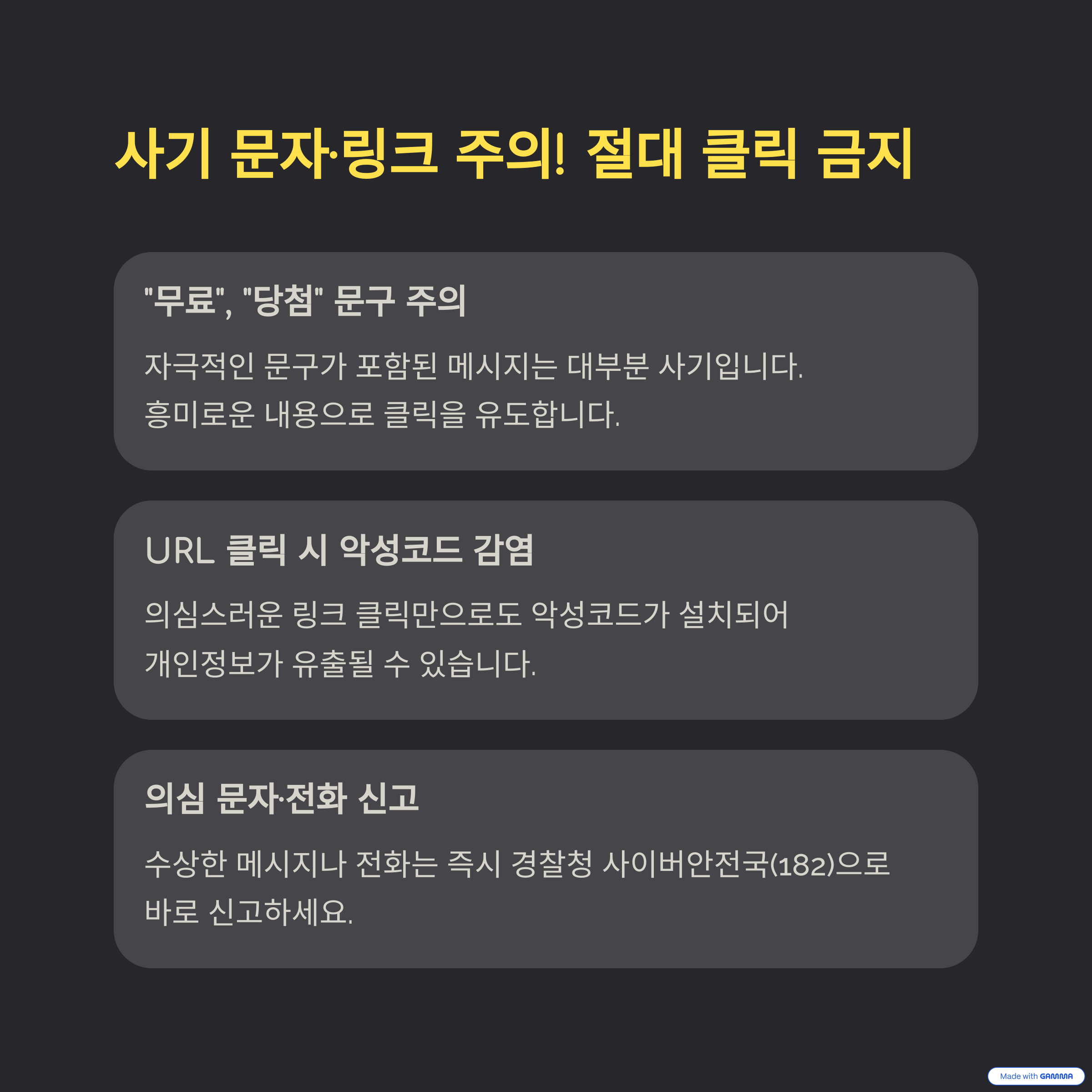 사기 문자, 링크 주의사항 - 절대 클릭 금지